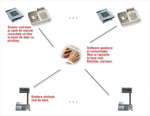 de etichete autoadezive (cod bare, denumire, data, etc), scanere de coduri de bare, imprimanta pentru etichete coduri de